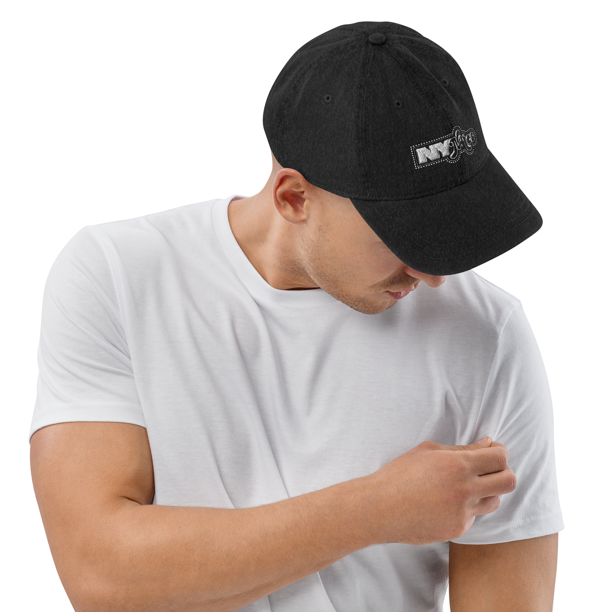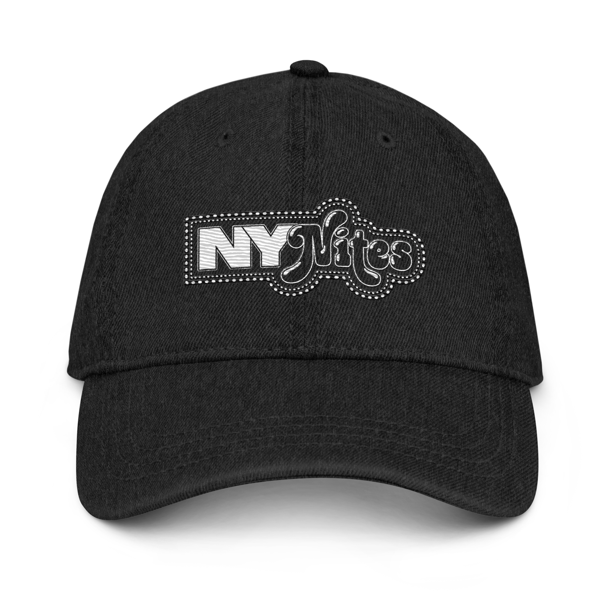 Adam Baran's NY NITES logo, now in dad(dy) hat form! Made from pigment-dyed denim with an embroidered logo, this cap offers a light feel, while the adjustable strap ensures a solid and comfortable fit.